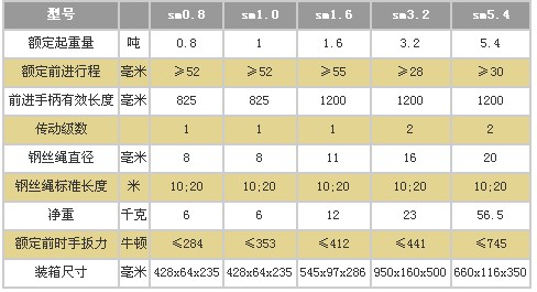 鋼絲繩手扳葫蘆,具有起重、牽引、張緊三大功能,整機結構設計合理,安全系數高,適用于野外無動力源狀況。該機機殼采用鋁合金壓鑄而成,配套使用的鋼絲繩具有耐磨性,可根據客戶需要配置相適合的鋼絲繩長度。